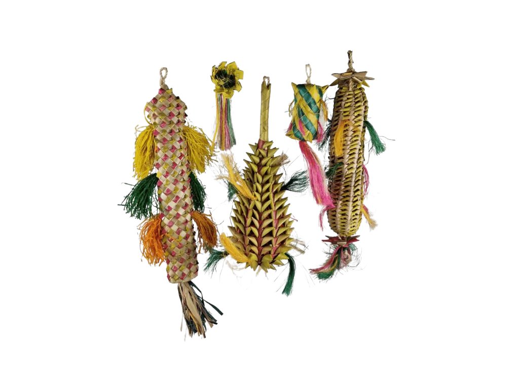 Hračky Napa jsou vyrobeny z přírodních materiálů, jako jsou banánové, palmové, kukuřičné listy, apod. Použité materiály jsou zbytkové materiály. Nejsou kvůli nim káceny žádné stromy ani sklízeny rostliny. Staré listy jsou odstraněny ze stromu nebo sbírány ze země a poté ošetřeny bezpečnými přírodními barvivy. Biologicky rozložitelné prvky i barviva jsou šetrné k ptákům i k životnímu prostředí, což z nich činí odpovědnou volbu pro lidi a zvířata.