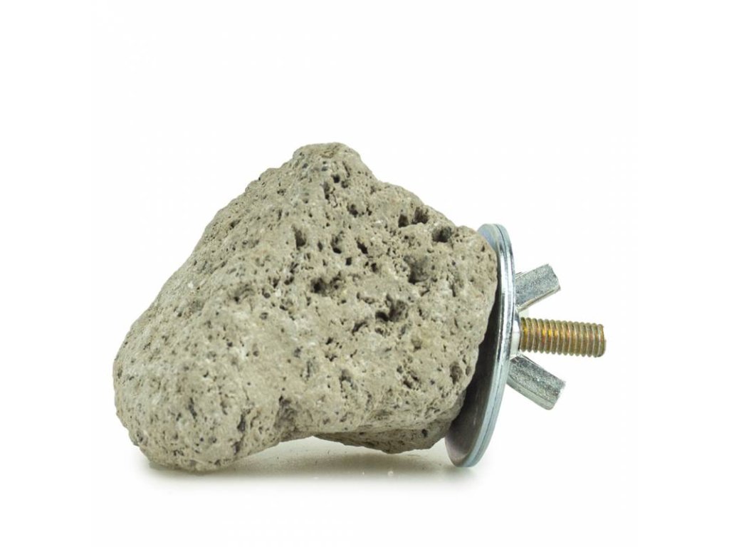 Design a účel Tento surový vulkanický kámen vyniká vysoce porézní strukturou a nepravidelným tvarem, který zvířatům nabízí pevnou a drsnou plochu k údržbě rohoviny. Díky praktickému šroubovacímu uchycení jej snadno připevníte přímo na mříže klece, čímž vytvoříte plně funkční stupátko, které ve voliéře či ubikaci působí naprosto přirozeným dojmem.