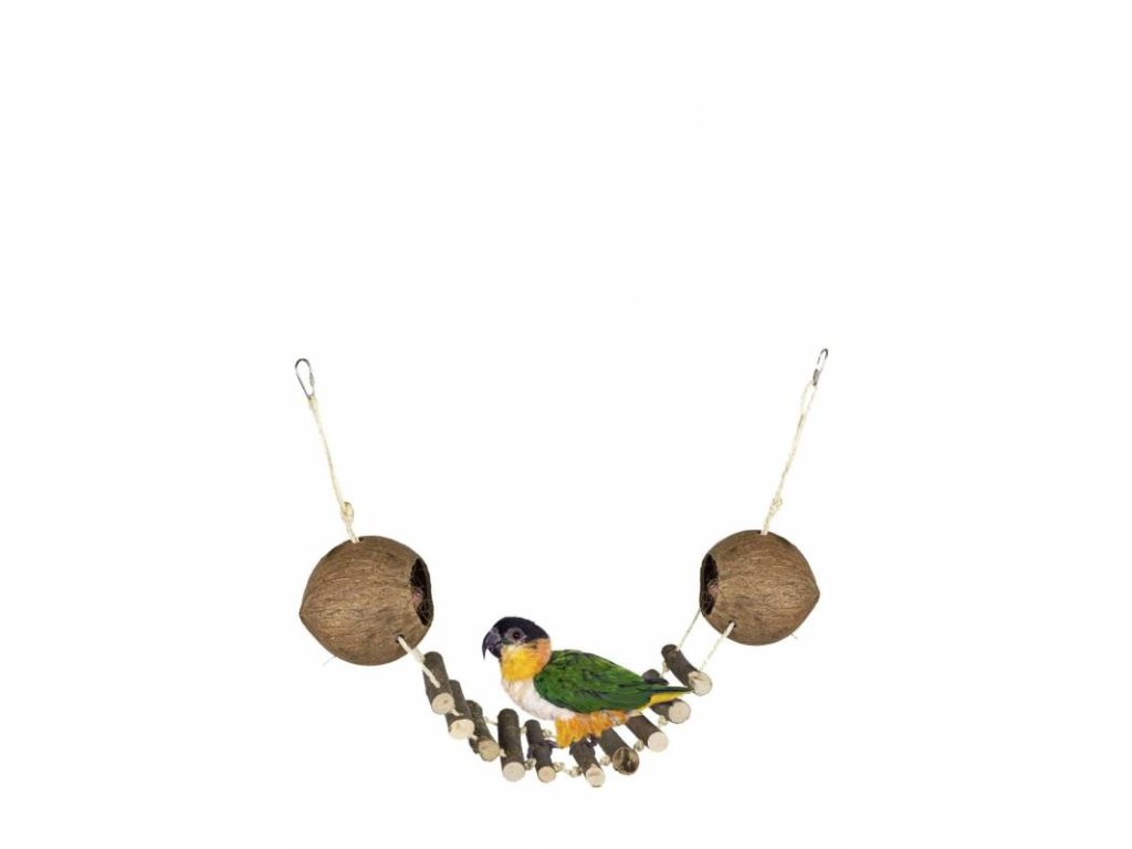 Složení a bezpečnost: Přírodní kokosové ořechy, dřevo (žebřík), sisalové lano, kovové karabiny. Přírodní produkt – tvar a barva se mohou lišit.