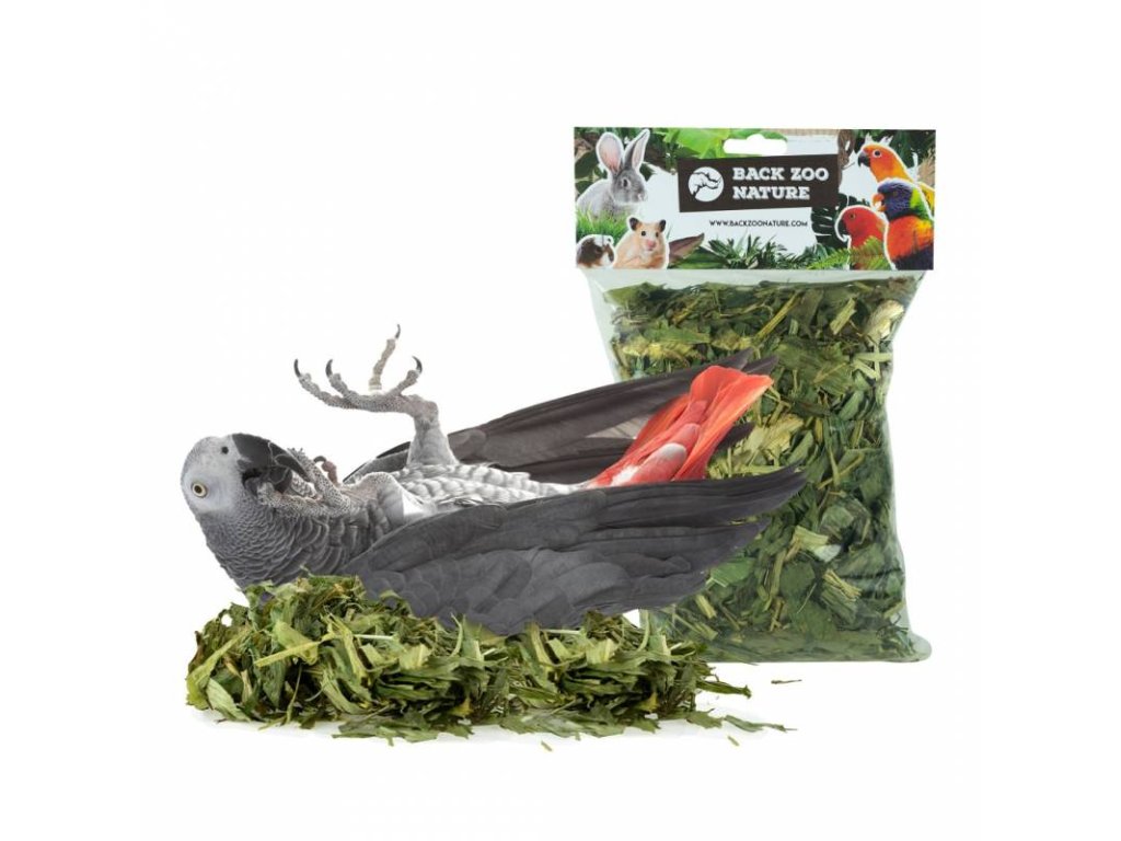 Návod k použití: Rozmístěte listí volně na dno ubikace, přimíchejte jej do stávající podestýlky, poskytněte jako stavební materiál pro hnízdo nebo jím naplňte hračky pro papoušky.