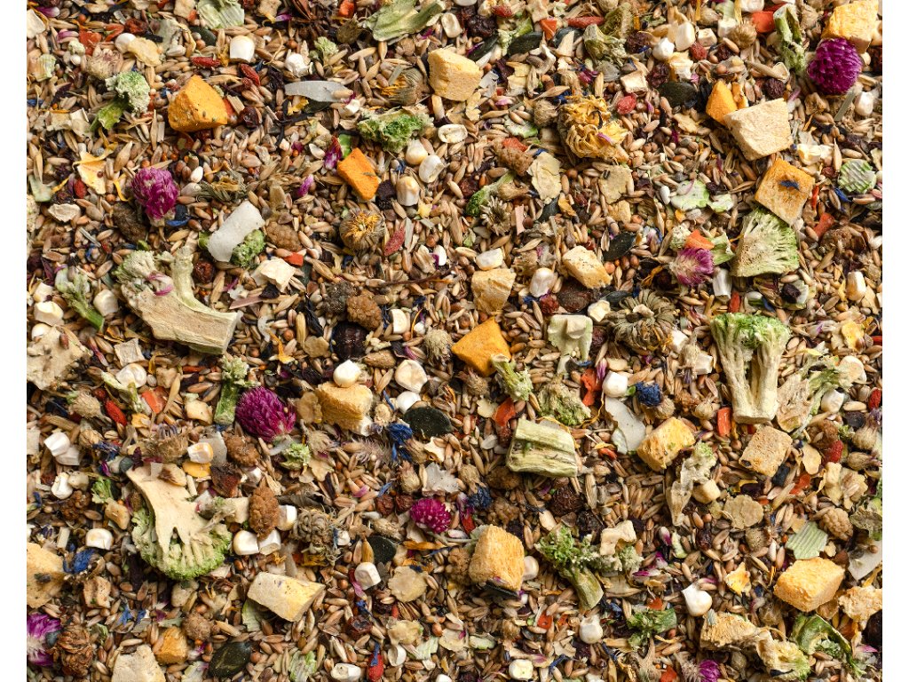 Balení obsahuje přes 40 druhů ingrediencí, díky čemuž Odkaz Divočiny imituje pestrost potravy, kterou mají papoušci v přírodě k dispozici. Každé semínko, bylina i plod má lehce odlišné složení živin a bioaktivních látek. Jejich pestrá kombinace tak poskytuje nepřekonatelné posílení imunitního systému a celkového stavu.