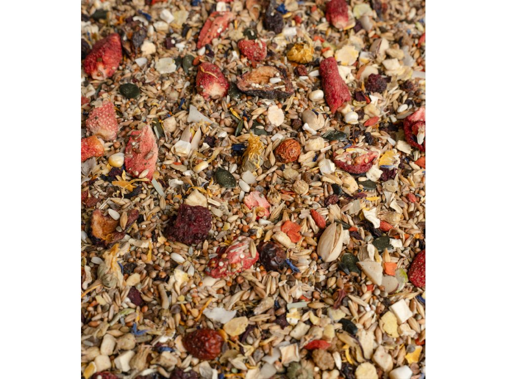 Vyvážená směs je vyvíjena s ohledem na nutriční a energetické potřeby papouščích mazlíčků v klidovém období. Veškeré suroviny jsou vyráběny a používány tak, aby obsahovaly maximum kvalitních živin, minerálů a vitamínů. Všechny sušené plody používané ve směsích jsou nesířené a neslazené.