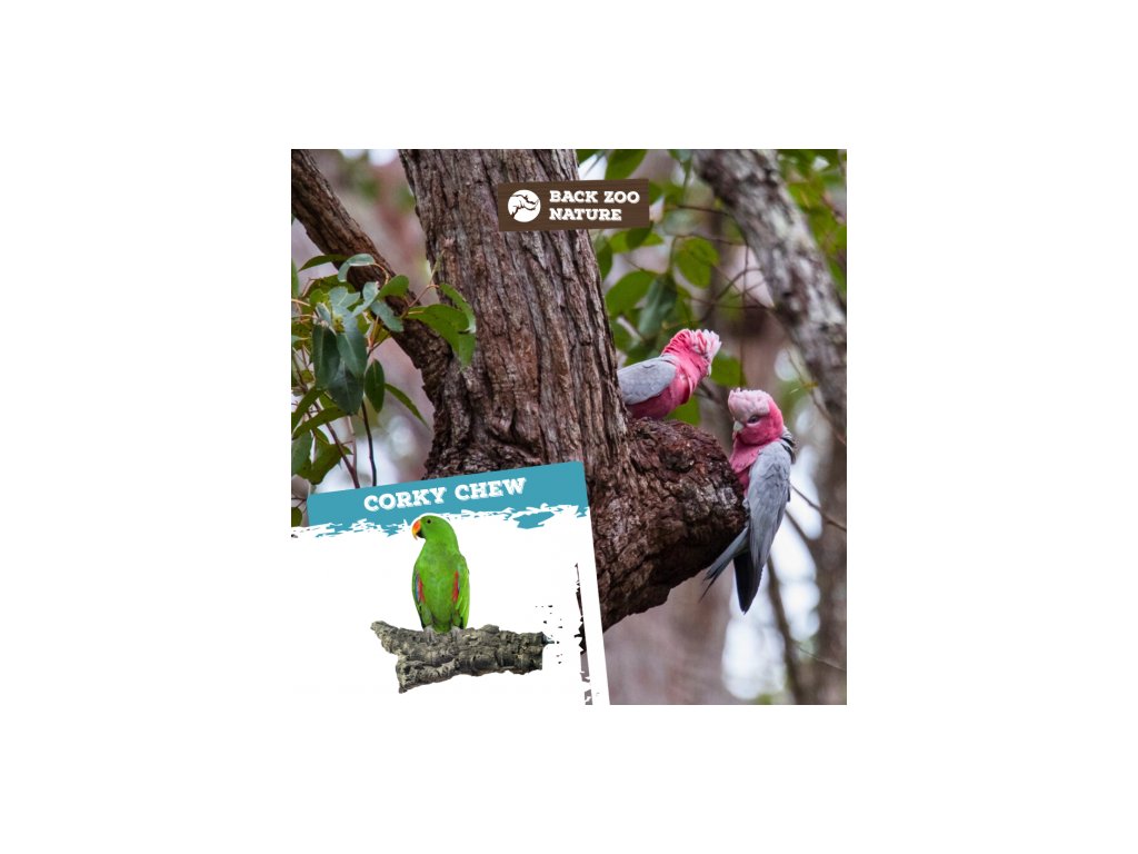 🦷 Podpora zdravého zobáku: Hrubá textura korku přímo vybízí k okusování, šťourání a ničení, což zajišťuje přirozené obrušování zobáku.
